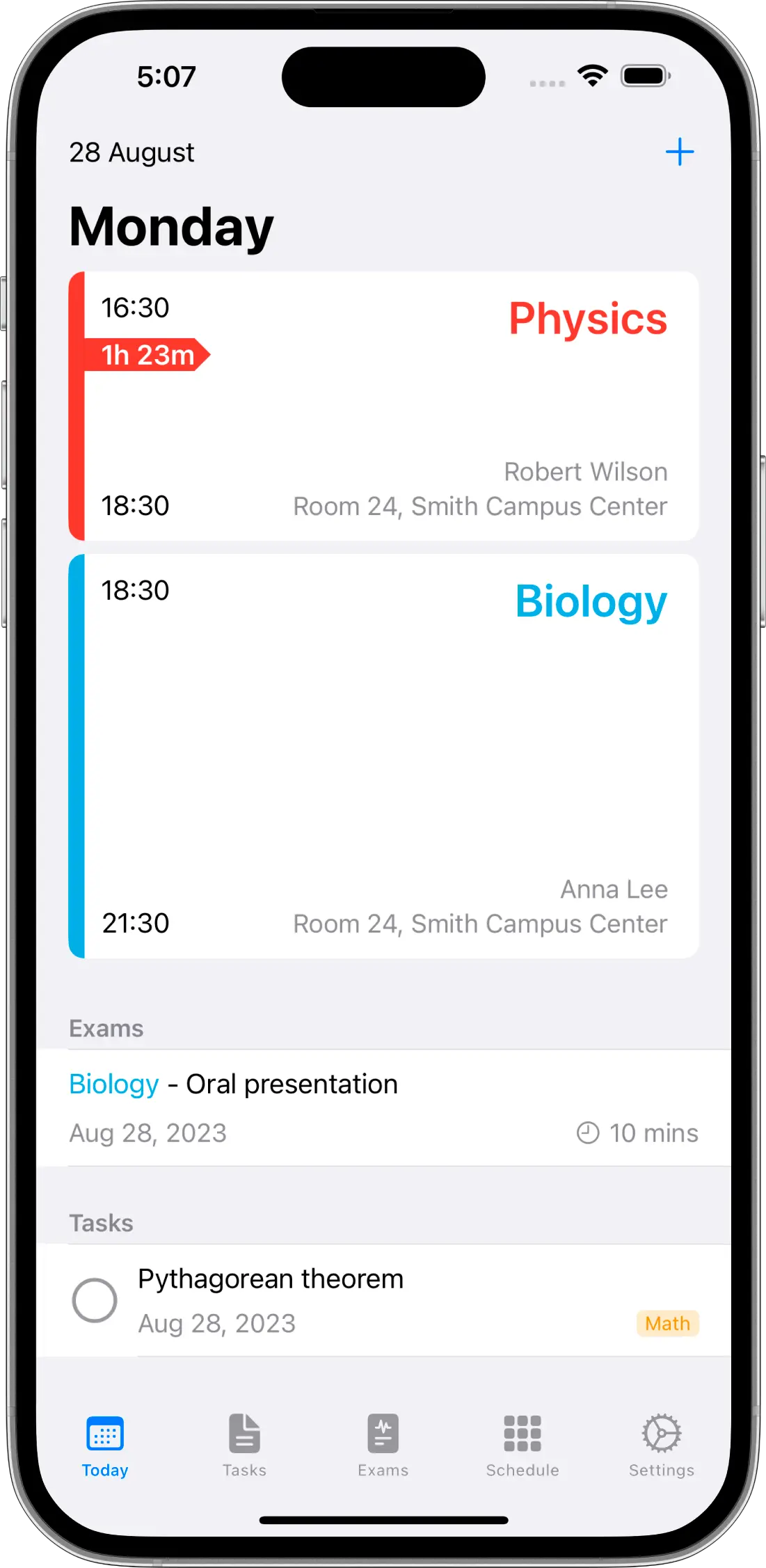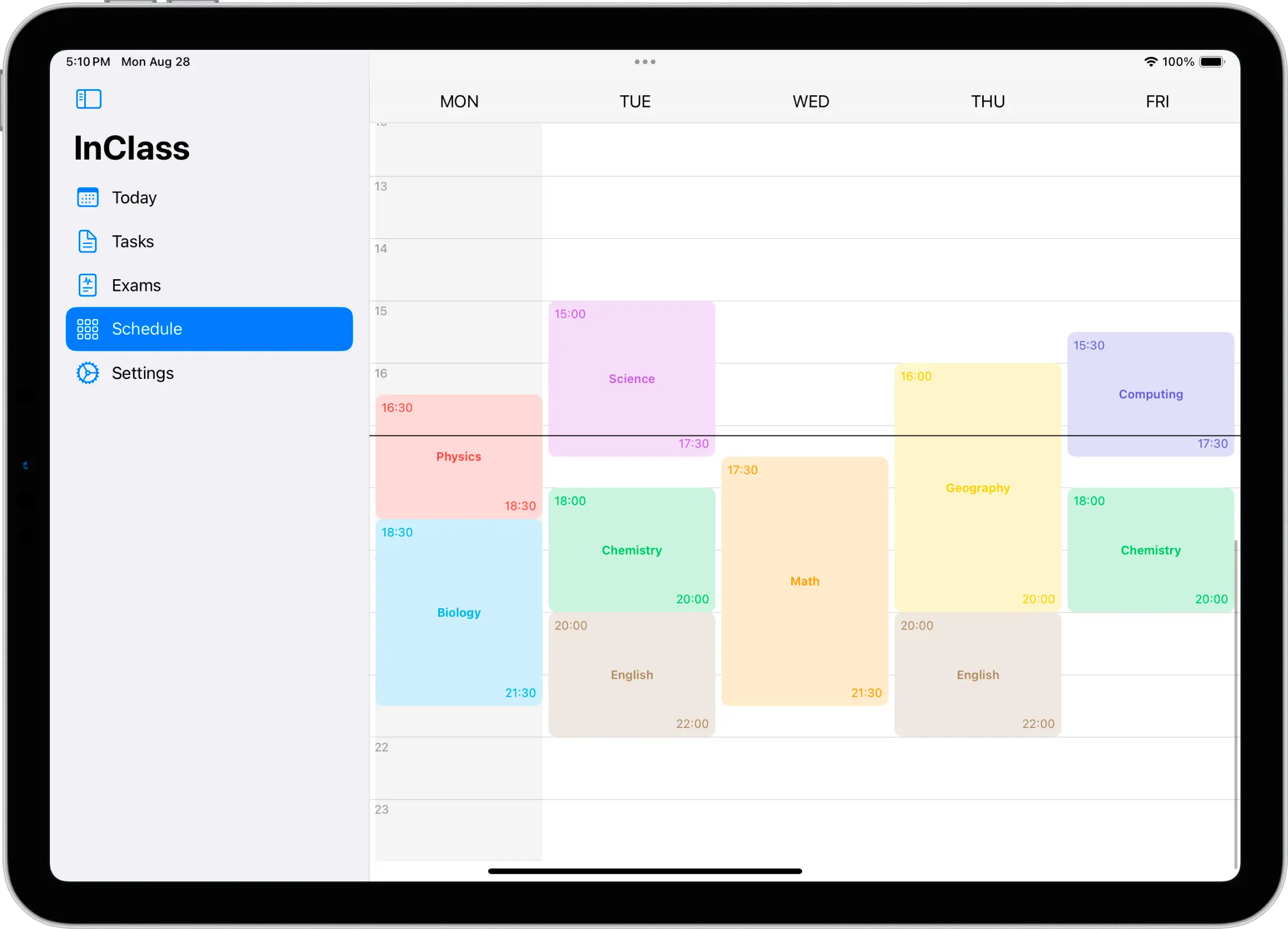 Personalize subjects with times, locations and teachers. Manage your academic calendar, assignments, and exams all in one place. Easily view daily classes and plan ahead with an intuitive interface.
